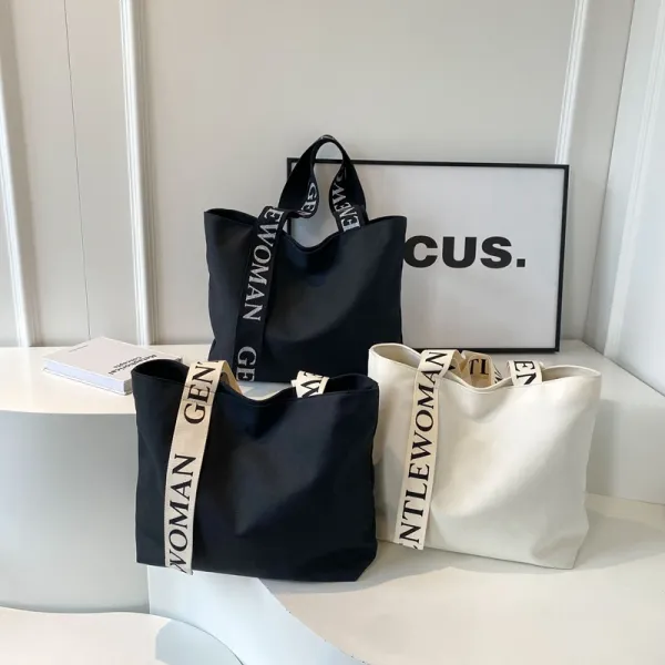 Classic tote bags feature simple designs and neutral colors, making them versatile and suitable for any occasion. They often come in materials like canvas, cotton, or leather.