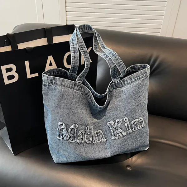Denim tote bags bring a stylish and trendy look, often appealing to younger demographics or those seeking a fashionable accessory. The denim material is known for its strength and longevity.